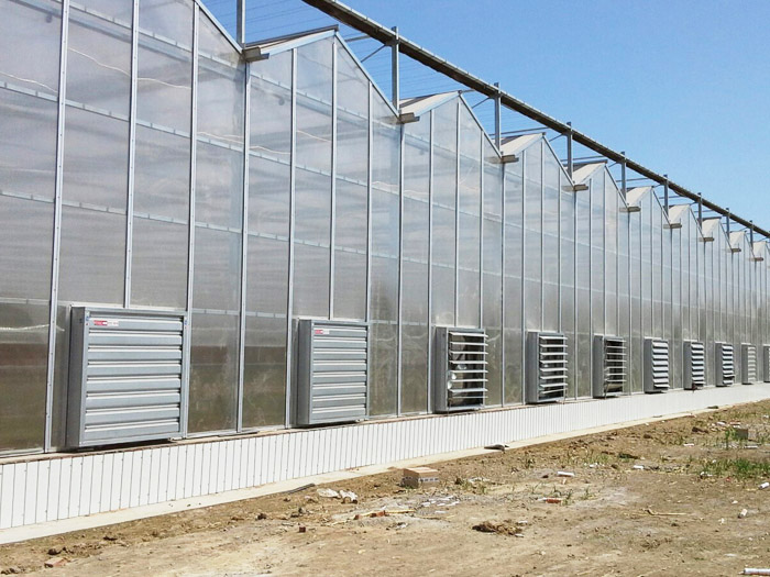 连栋温室是一种经济型温室,它以优美的弧线形和造价低倍受用户欢迎。弧形室顶美观大方,视线流畅。结构用钢量小,保温性能好。制造成本相对较低,属经济型温室,适用于我国大部分地区。北方地区多采用双层膜温室,南方地区多选用单膜温室。能在可见光0.4-0.7微米范围内得到大光照,层膜充气后,可以形成厚厚的气囊,能有效地防止热量流失和阻止冷空气的侵入,采用双层充气膜后可大大提高温室保温性能,节省运行成本。覆盖材料顶部为聚乙烯无滴长寿膜覆盖,外层防紫外线,内层防集露;四周可以根据用户需要采用聚乙烯无滴长寿膜或聚碳酸酯中空板覆盖。