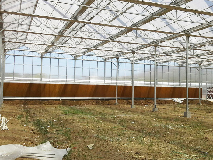连栋温室是一种经济型温室,它以优美的弧线形和造价低倍受用户欢迎。弧形室顶美观大方,视线流畅。结构用钢量小,保温性能好。制造成本相对较低,属经济型温室,适用于我国大部分地区。北方地区多采用双层膜温室,南方地区多选用单膜温室。能在可见光0.4-0.7微米范围内得到大光照,层膜充气后,可以形成厚厚的气囊,能有效地防止热量流失和阻止冷空气的侵入,采用双层充气膜后可大大提高温室保温性能,节省运行成本。覆盖材料顶部为聚乙烯无滴长寿膜覆盖,外层防紫外线,内层防集露;四周可以根据用户需要采用聚乙烯无滴长寿膜或聚碳酸酯中空板覆盖。