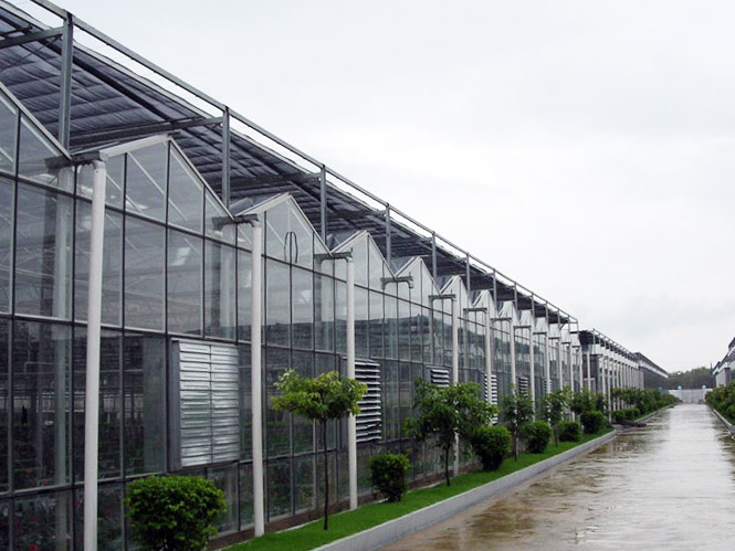 玻璃温室指以玻璃作采光材料的温室,属于温室大棚的一种 ,在栽培设施中,玻璃温室作为使用寿命长的一种形式, 适合于多种地区和各种气候条件下使用。行业内以跨度与开间的尺寸大小分为不的建设型号,又以不同的使用方式分为:蔬菜玻璃温室、花卉玻璃温室、育苗玻璃温室、生态玻璃温室、科研玻璃温室、立体玻璃温室、异形玻璃温室、休闲玻璃温室、智能玻璃温室等等。其面积与使用方式可有温室主自由调配,小的有庭院休闲型的,大的高度可达10米以上,跨度可达16米,开间大可达10米,智能程度可达到一键控制 。玻璃温室的冬季采暖问题可采用多种供暖方式,其能耗费用居中,大都能接受。