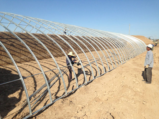 大棚骨架的主要是由温室复合资料制成的拉杆,压杆,立柱,以及拱杆等把塑料薄膜掩盖住的一种大棚,它的这种形状是拱圆形的塑料大棚,这种大棚的占地面积很大,吸收热的效应也非常好,建造起来方便,建造一个的成本也是非常的低,这种大棚成为社会农村种植产物广泛的工具之一。