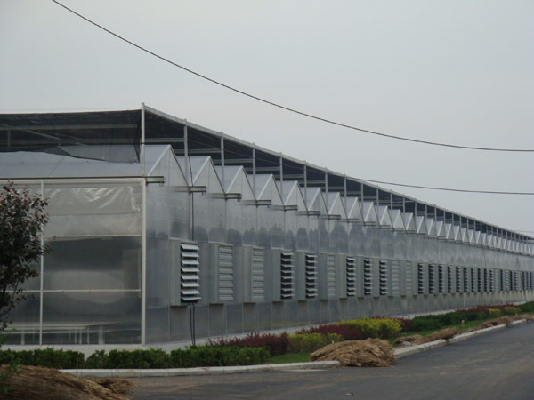 连栋温室是一种经济型温室,它以优美的弧线形和造价低倍受用户欢迎。弧形室顶美观大方,视线流畅。结构用钢量小,保温性能好。制造成本相对较低,属经济型温室,适用于我国大部分地区。北方地区多采用双层膜温室,南方地区多选用单膜温室。能在可见光0.4-0.7微米范围内得到大光照,层膜充气后,可以形成厚厚的气囊,能有效地防止热量流失和阻止冷空气的侵入,采用双层充气膜后可大大提高温室保温性能,节省运行成本。覆盖材料顶部为聚乙烯无滴长寿膜覆盖,外层防紫外线,内层防集露;四周可以根据用户需要采用聚乙烯无滴长寿膜或聚碳酸酯中空板覆盖。